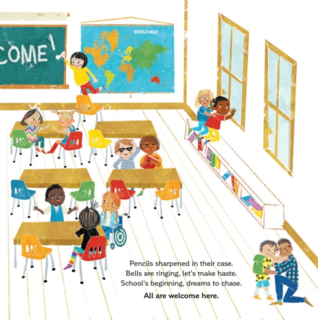 This warm, welcoming picture book celebrates diversity and gives encouragement and support to all kids. Readers can follow a group of children through a day in their school, where everyone is welcomed with open arms and learn from each other's traditions.