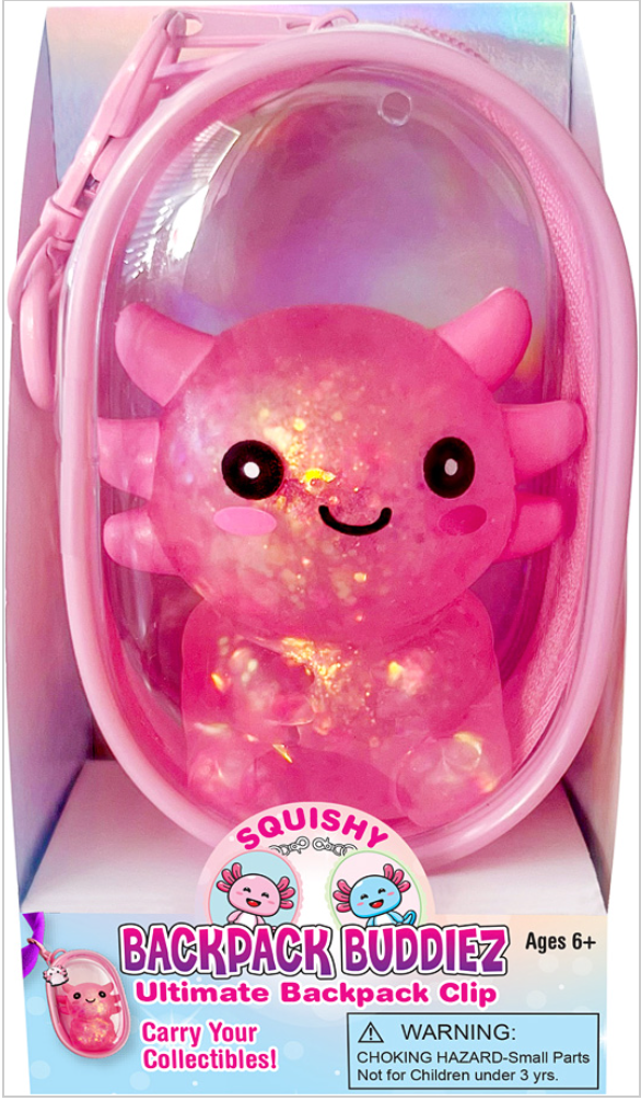 Axolotl fans proudly display their love for this unique amphibian with the ultimate backpack clip and squishy pal.