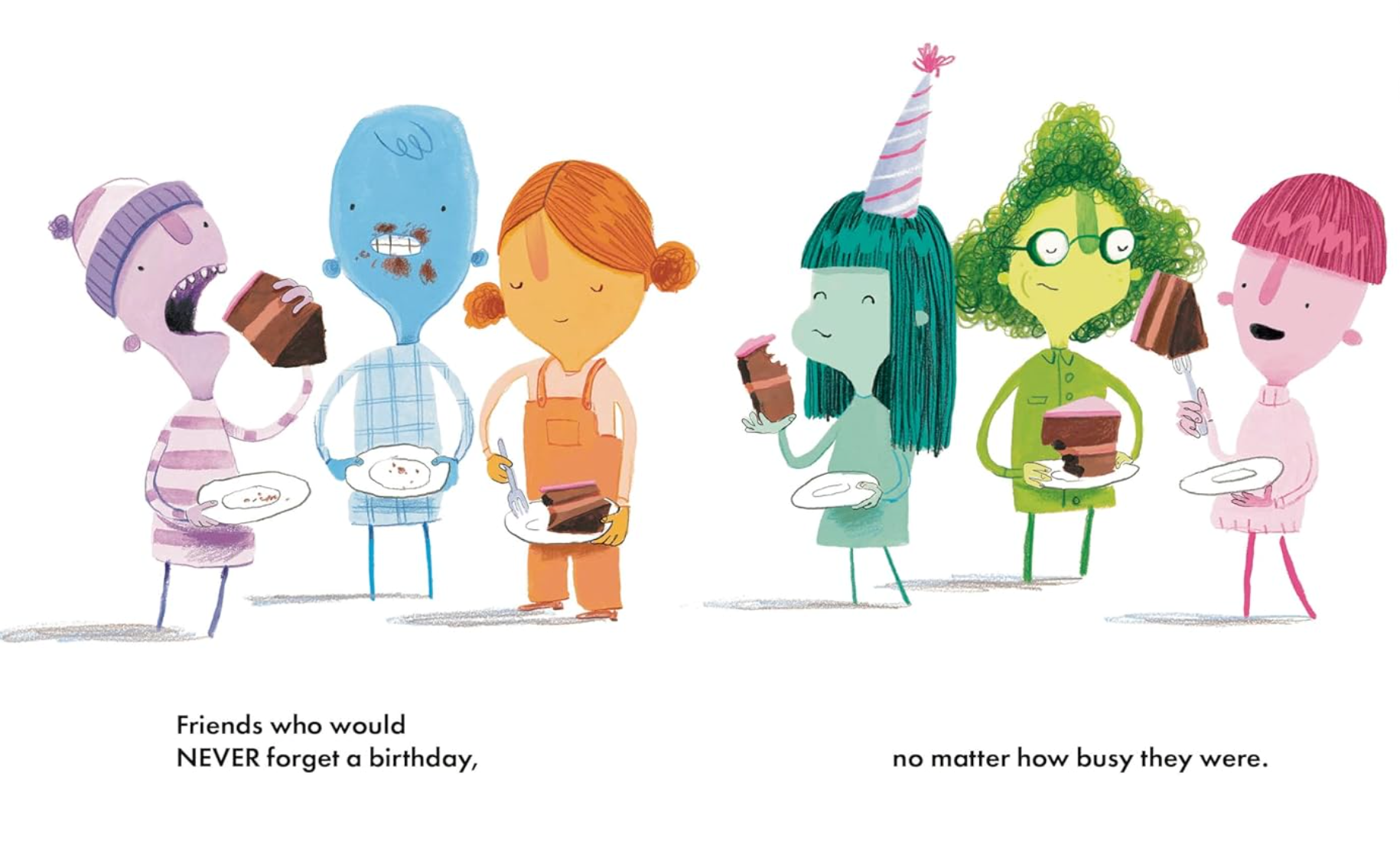 It’s Bridget’s birthday, and she thinks it would be fun to spend the day with friends. But Royal has places to go, Rodney has to see a man about a dog, Regis has to wash his hair, and Pearl has a list of items she needs to cross off as quickly as she can. Bridget’s friends are all too busy to hang out!