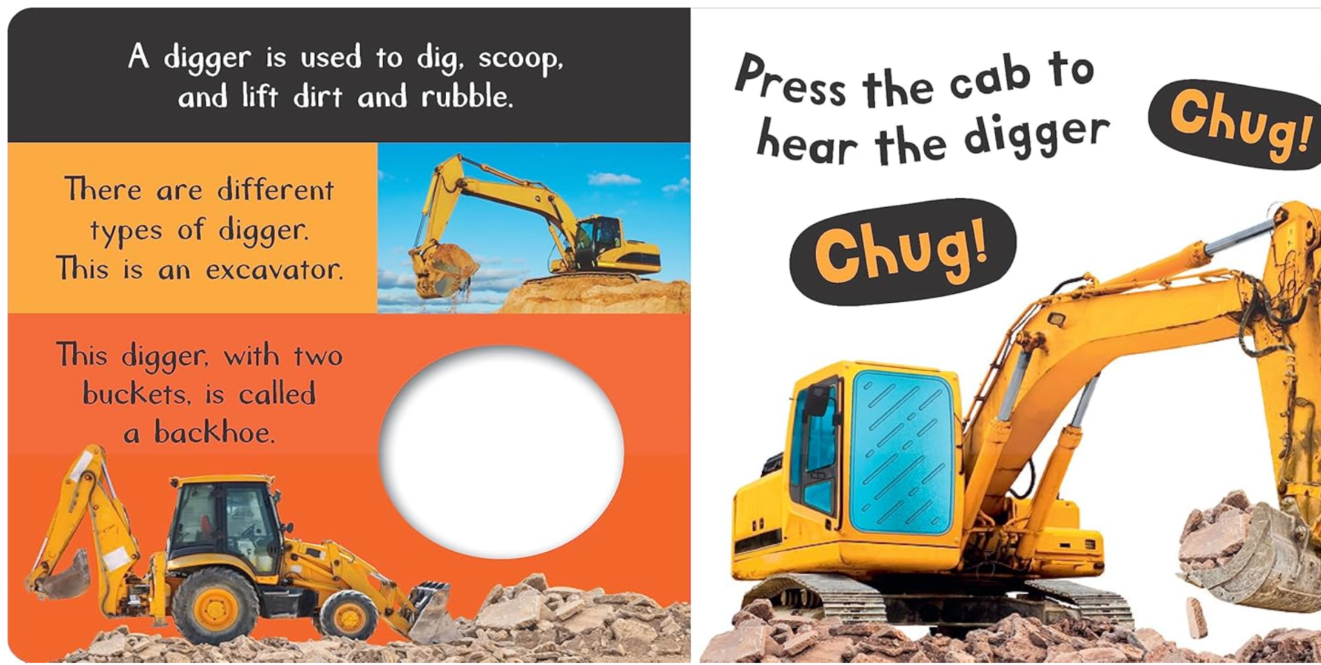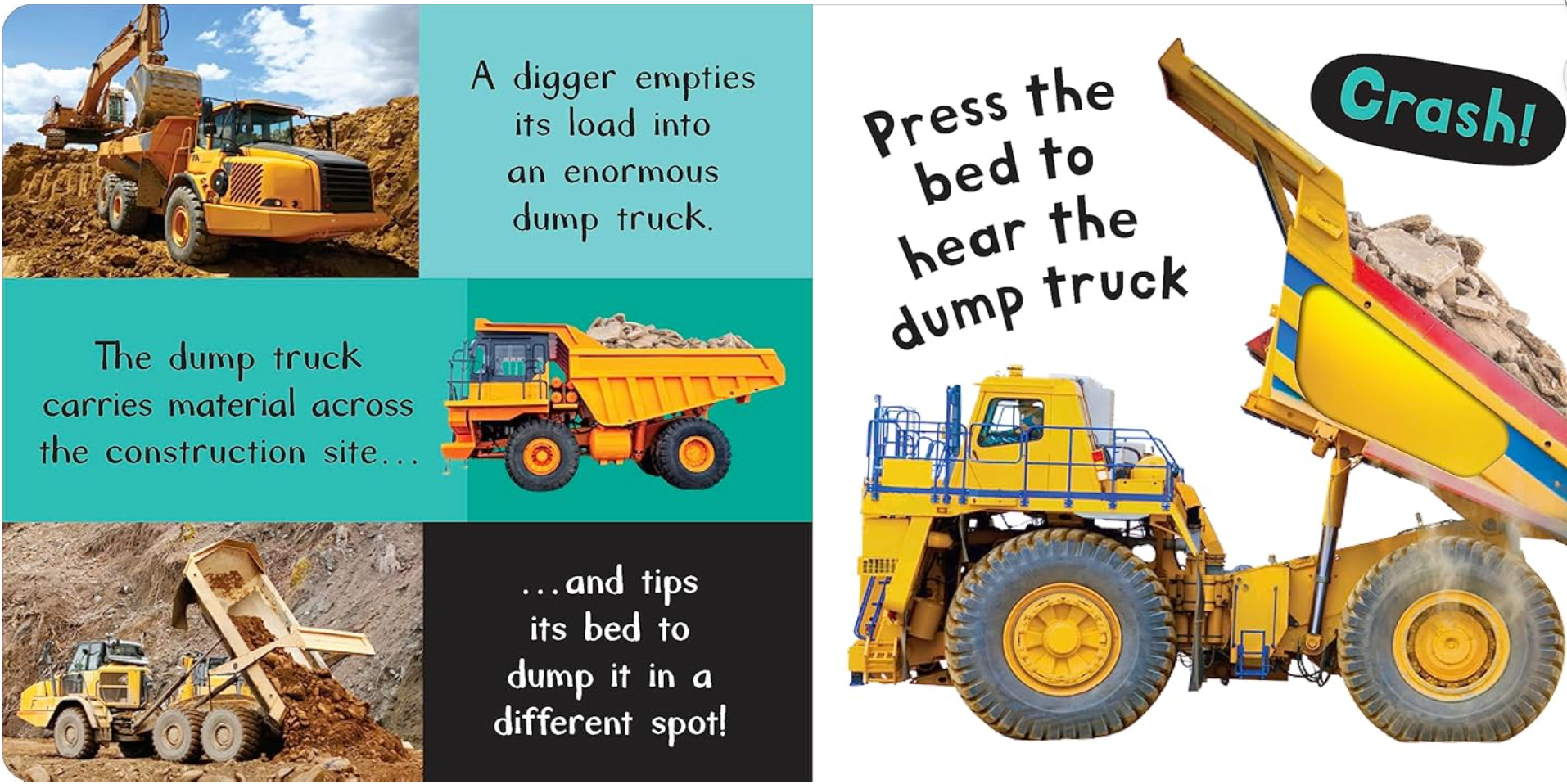 This interactive, tactile sound book features full-color photographs of construction vehicles. Includes a touch-and-feel texture on each spread and 6 sounds!