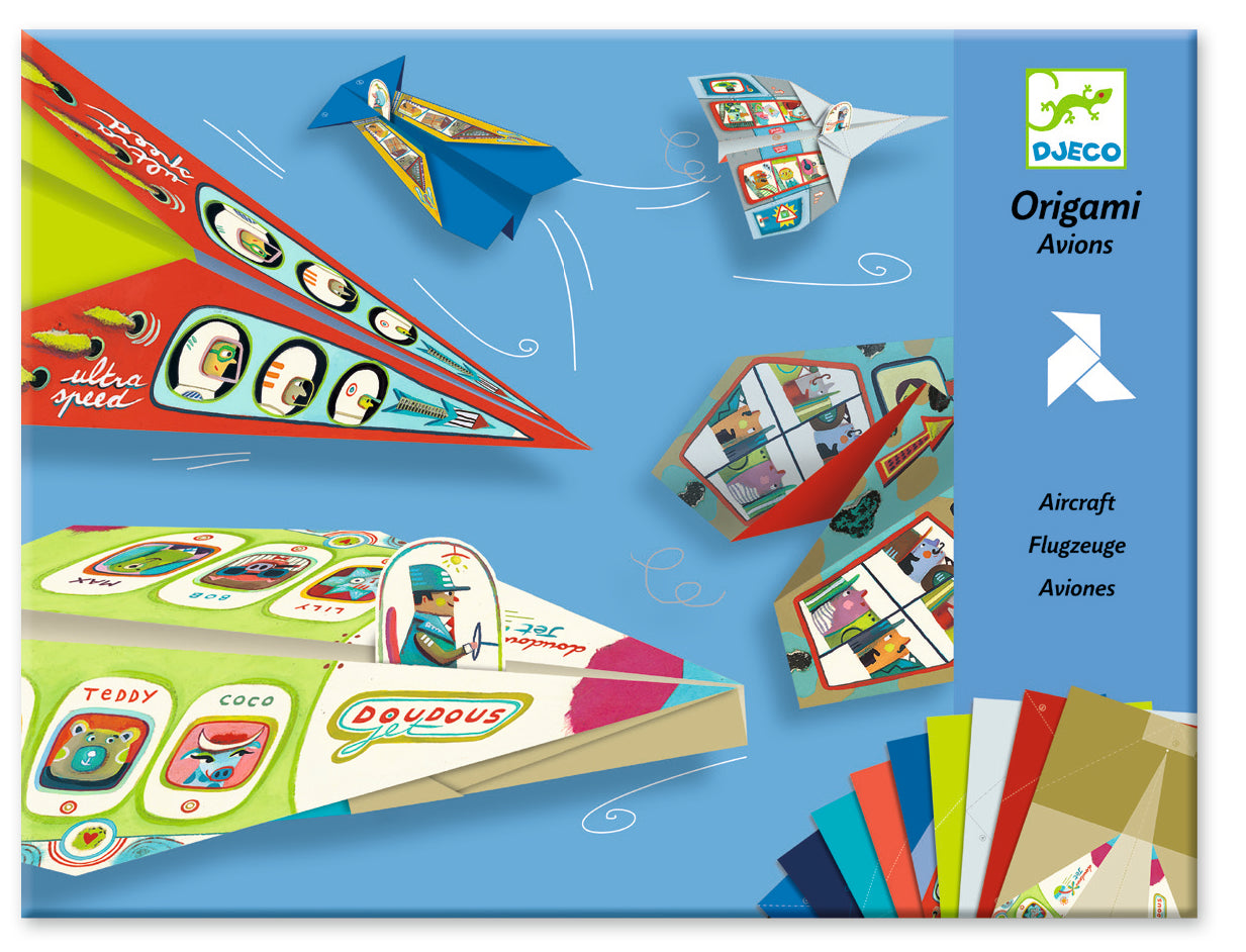 Build awesome airplanes and fly using this creative origami kit from French toy maker, Djeco. The kit includes 20 colorful papers, 20 pilot stickers and a instruction booklet.