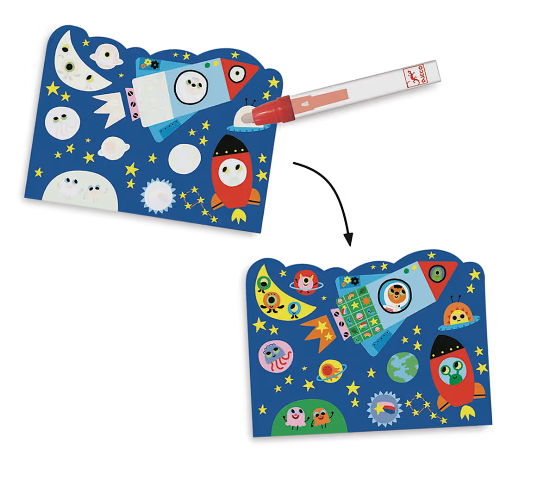Simply fill the brush with tap water and paint away to reveal the hidden full color illustrations. Learn to find and count different hidden items as they appear. And when the painting dries, the images magically disappear, ready to be painted and rediscovered again.