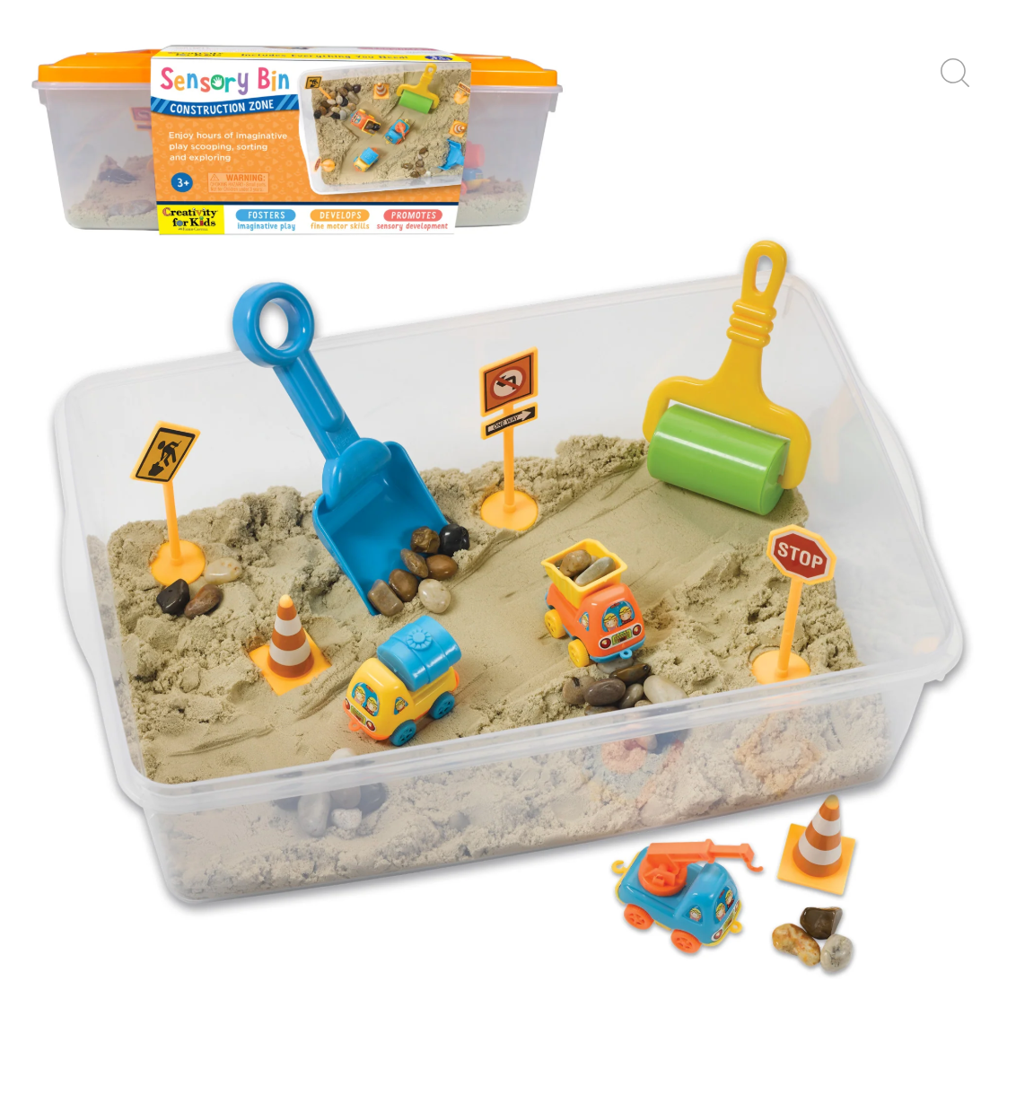 The construction-themed sensory bin is filled with thoughtfully selected and safety-tested materials, providing preschool age toddlers an opportunity to discover, imagine, learn and create. While kids actively engage their senses and practice fine motor movement, they'll enjoy hands-on pretend play in this self-contained sensory bin.