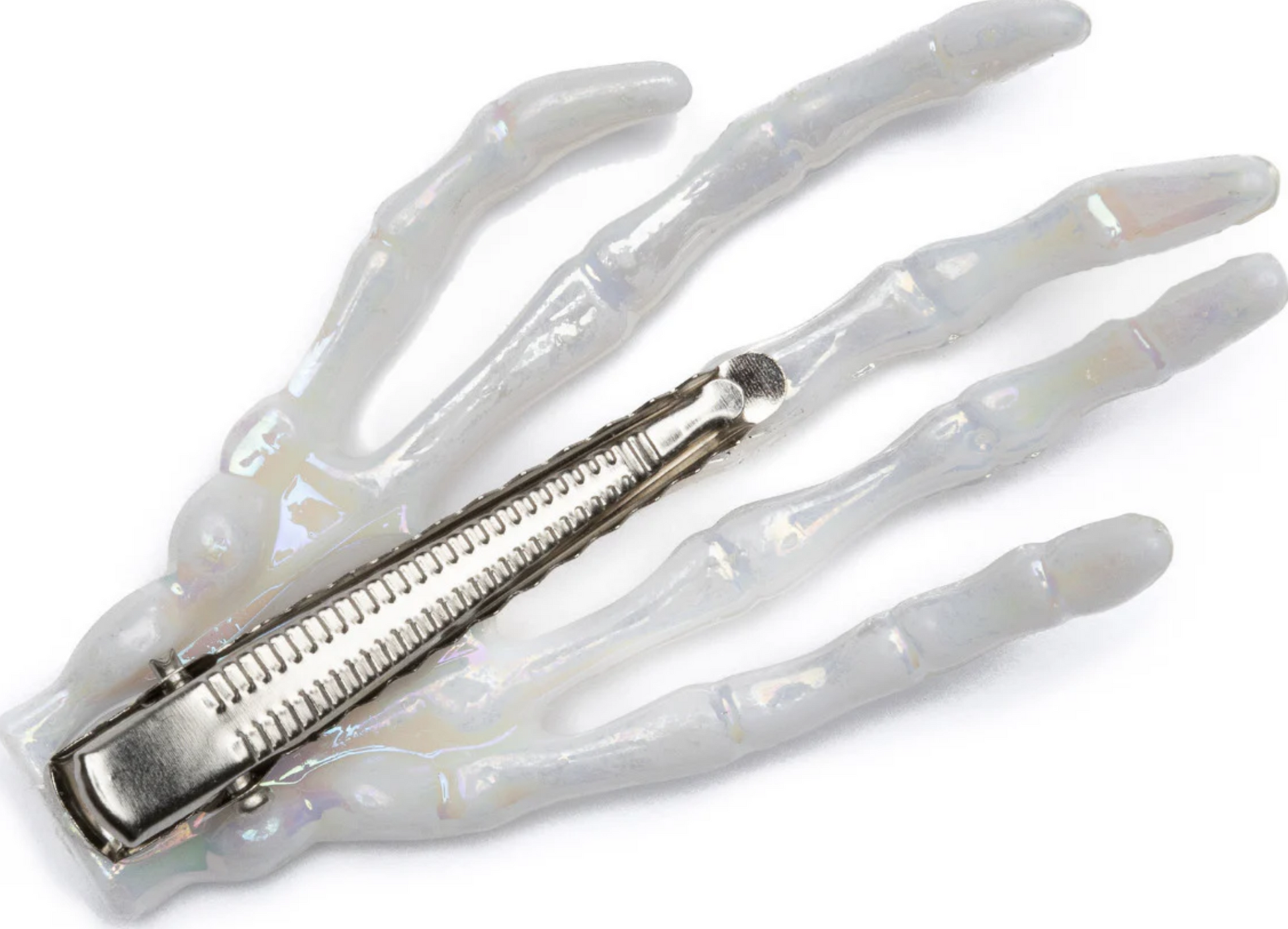 Get ready to add some spook-tacular new accessories to your wardrobe! Crafted with meticulous attention to detail, each clip resembles a delicate skeleton hand, capturing the intricate contours and joints with remarkable realism. Made from durable materials with a bone-white finish, these hair clips are both spooky and stylish, fitting seamlessly into any gothic or Halloween-themed ensemble.