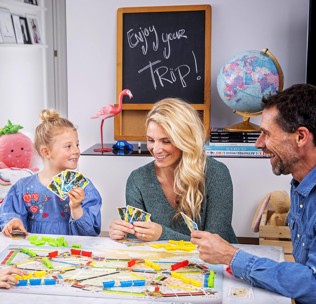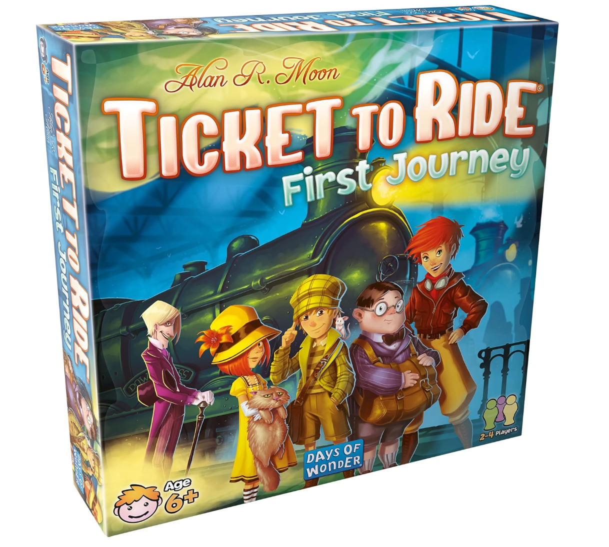 Players of all ages can now venture across America by train in Alan R. Moon's ticket to ride: first journey. With a brand new map and simplified rules, first journey is the perfect way to introduce new players to the game of cross-country travel. Just like in ticket to ride, players collect train cards, claim routes, and try to connect cities coast-to-coast. In first journey, though, routes are shorter, train cards are drawn straight from the deck, and the game ends when one player completes six tickets, claiming the golden ticket as their prize. Climb aboard, travelers, your incredible first journey awaits!